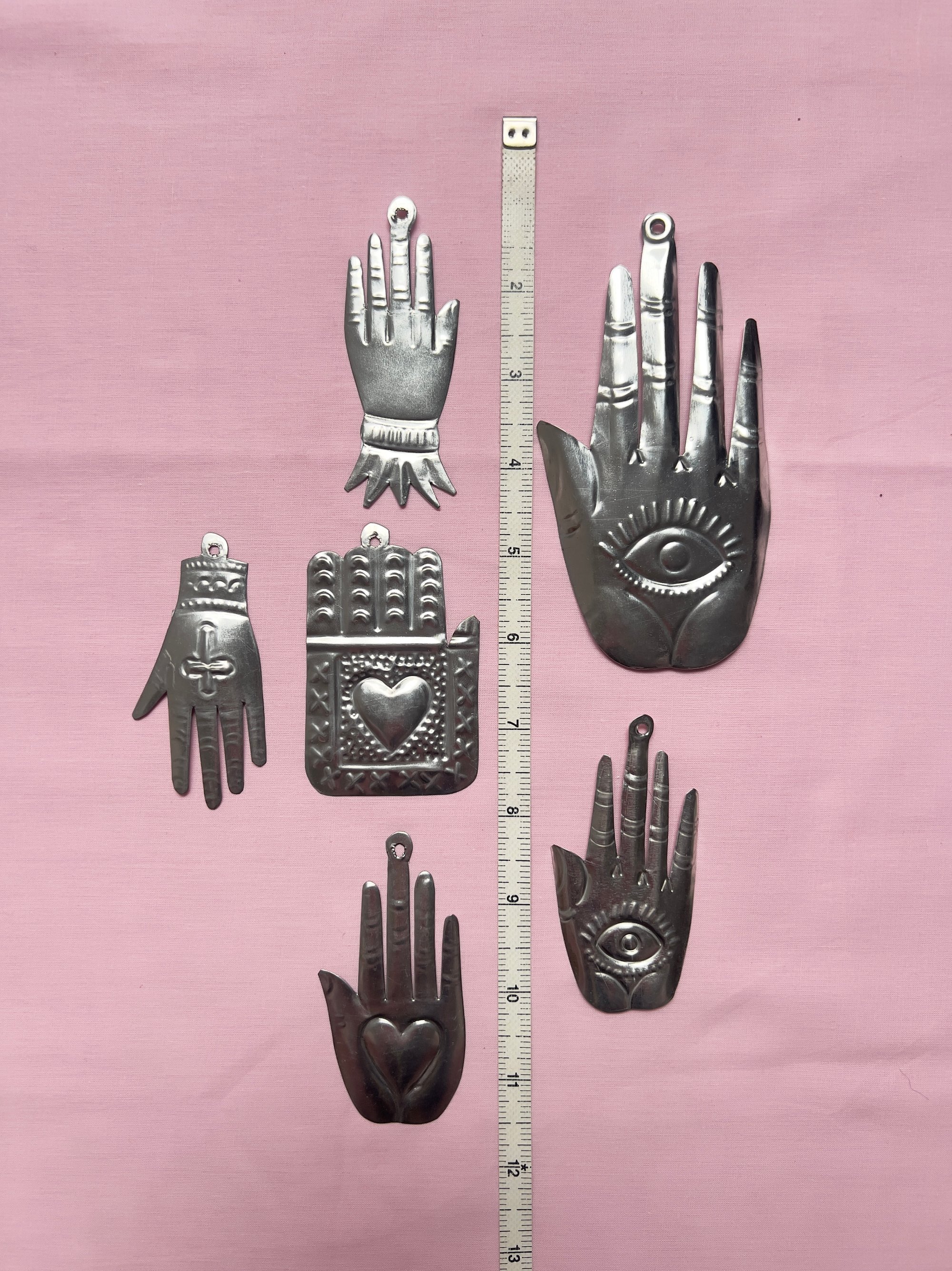 Hand tin milagros